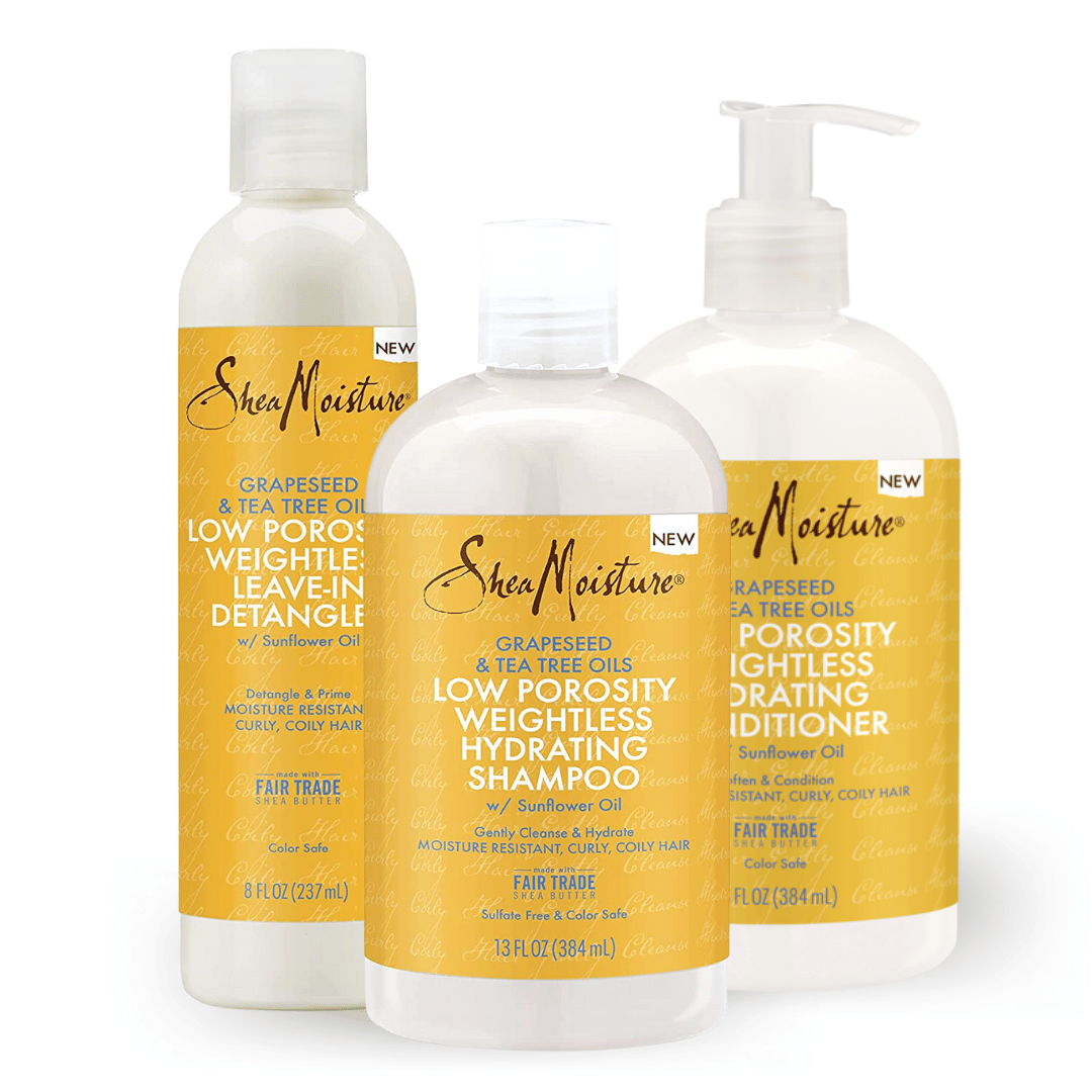 Pack Porosidad Baja Shea Moisture: Shampoo, Acondicionador, Crema